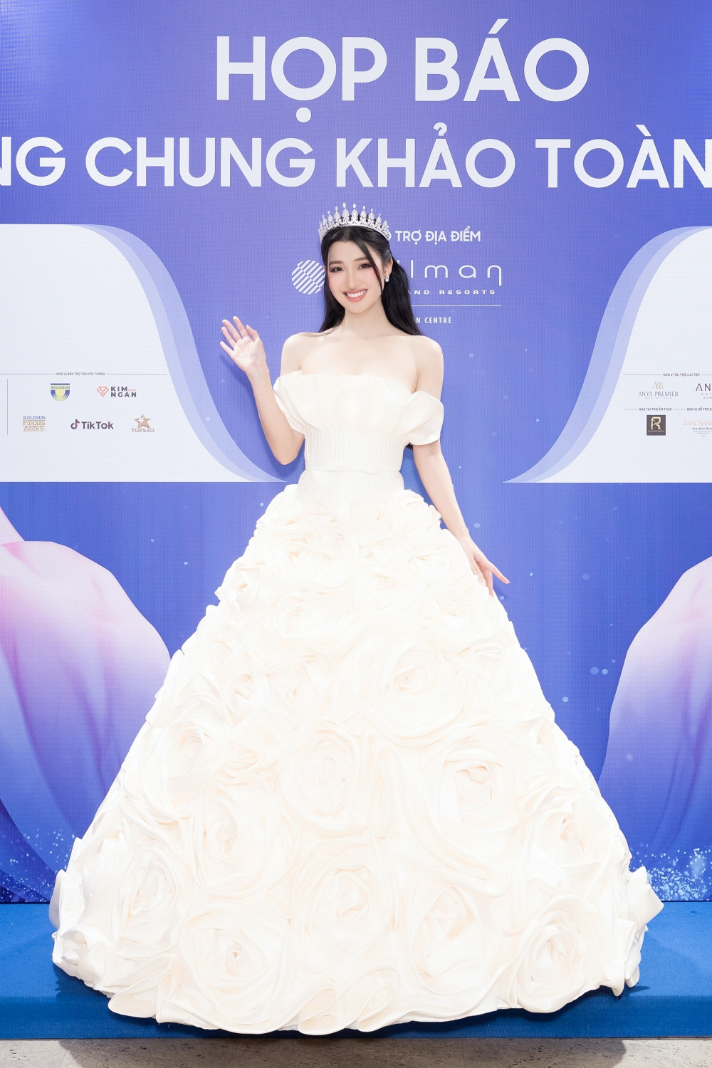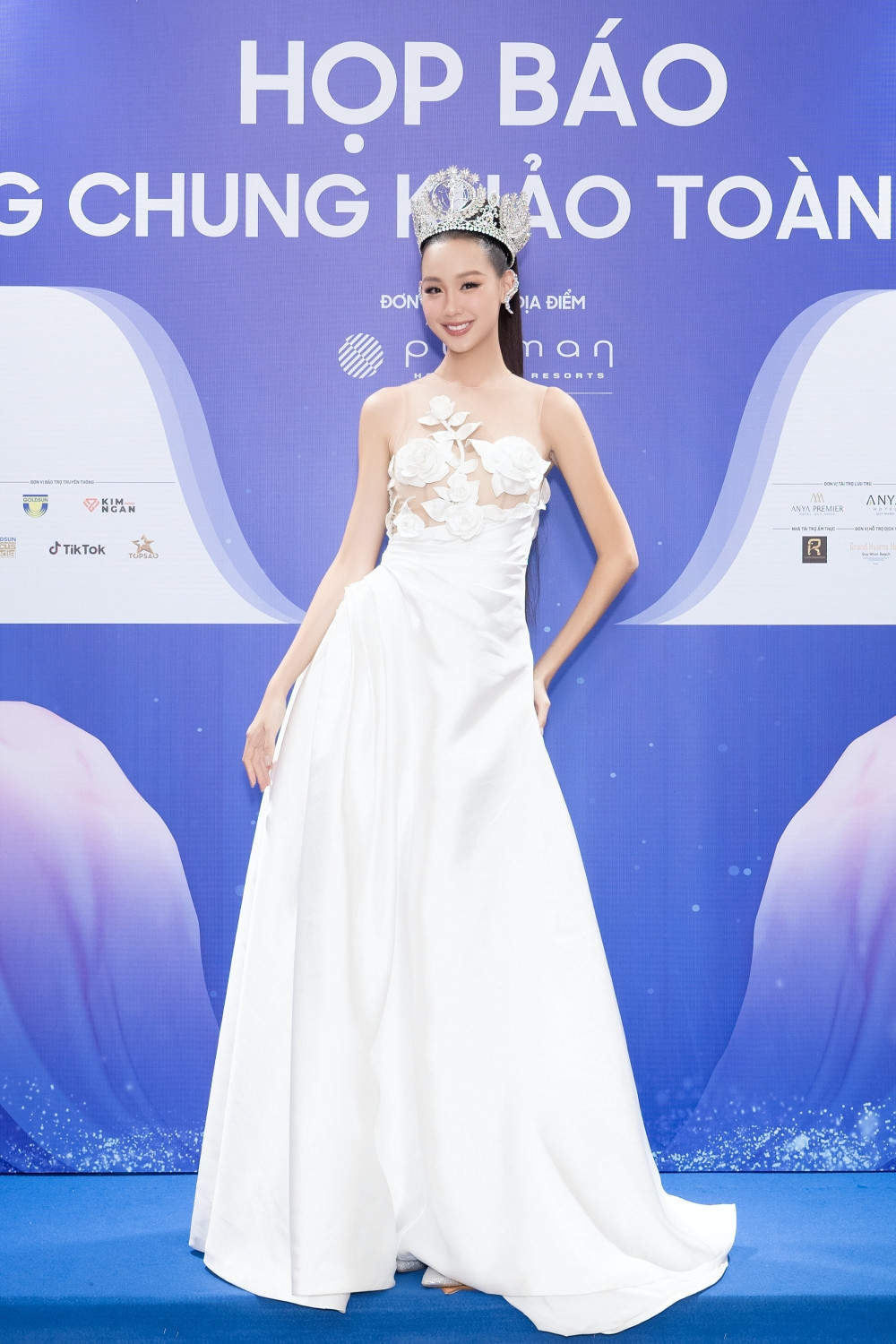 Trong họp báo vòng Chung khảo Miss World Vietnam 2023, Huỳnh Nguyễn Mai Phương xuất hiện rạng rỡ với cương vị đương kim Hoa hậu.