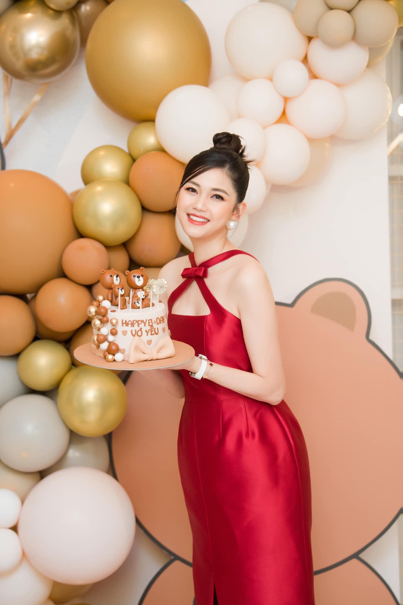 Ông xã của Thanh Tú cũng rất chu đáo và lãng mạn khi trang trí những chùm bóng bay và bánh kem với dòng chữ "Happy Birthday vợ yêu" để dành tặng cho Á hậu Thanh Tú.