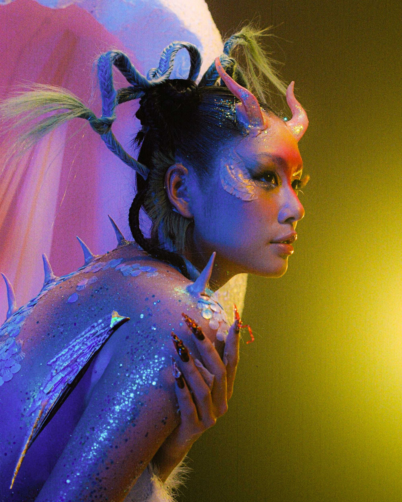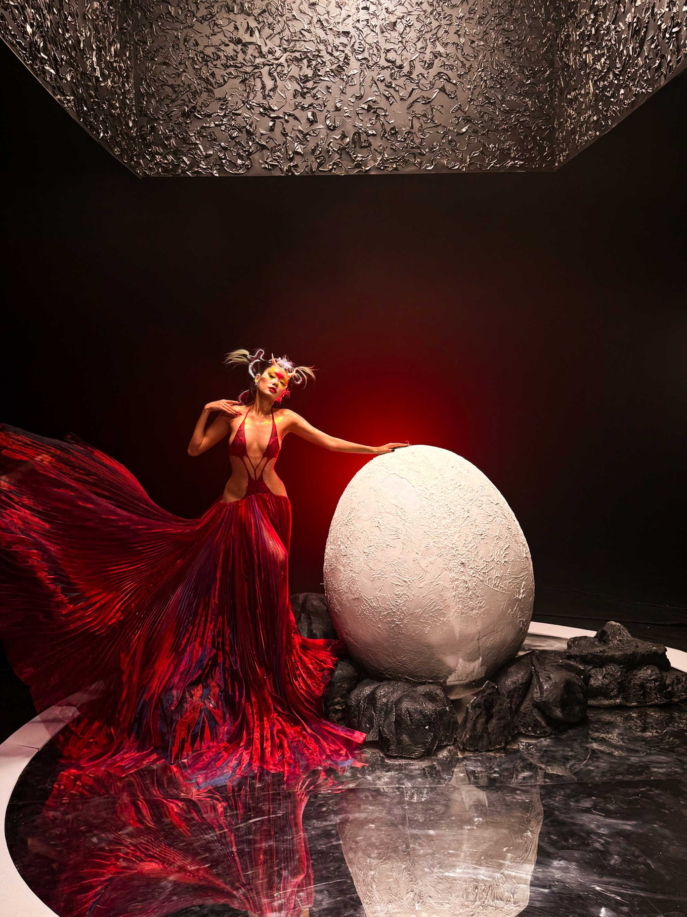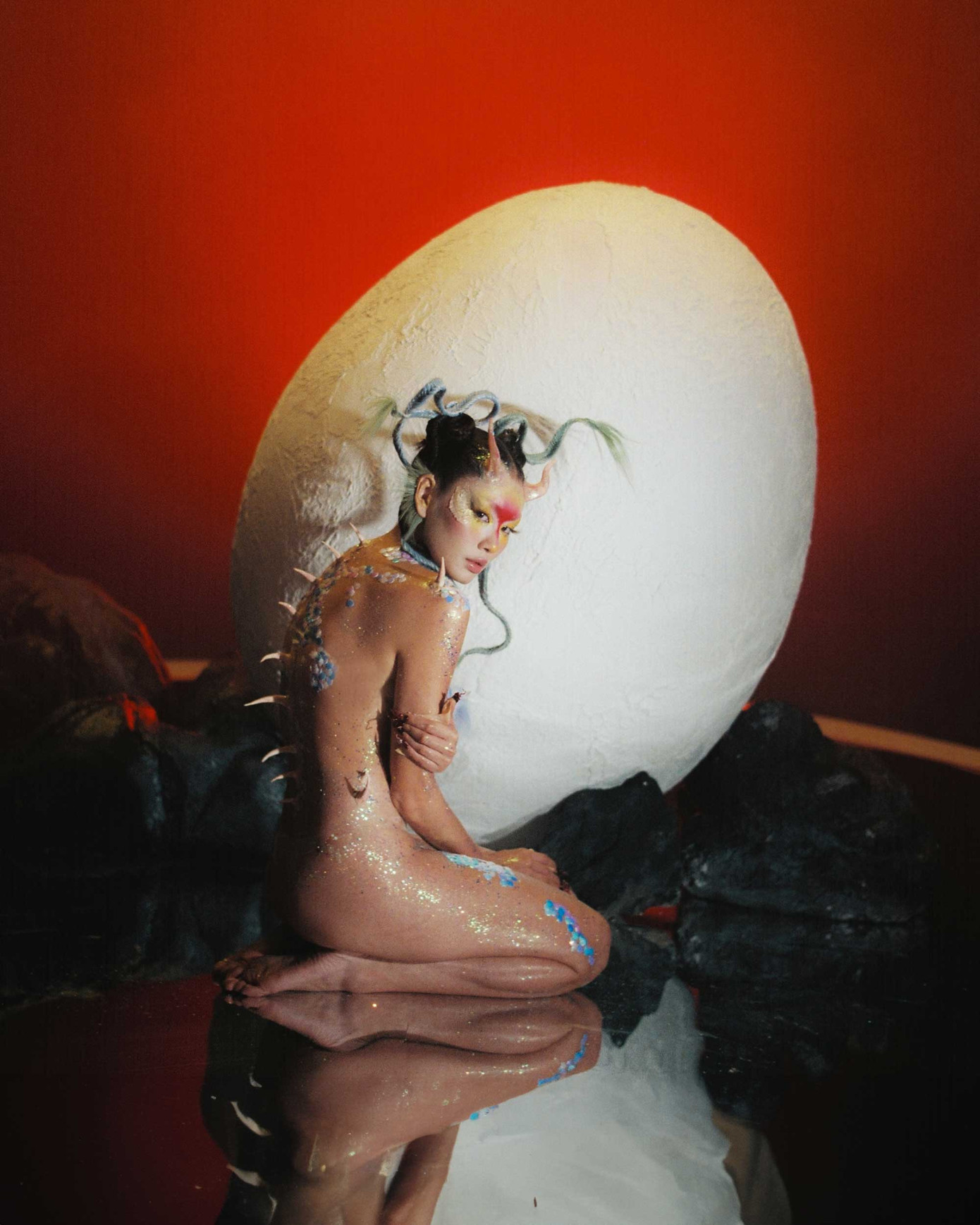 Trong bộ ảnh này, Thảo Nhi Lê đã khoác lên mình đặc điểm của nhiều loài vật quen thuộc trong truyền thuyết như rồng, rắn, cá và loài chim lông vũ. Nối tiếp ý tưởng từ bộ hình về mẹ Âu Cơ từng 'gây bão' vào năm 2022, bộ hình “Giống Rồng Tiên” mang đến câu chuyện viễn tưởng về quả trứng thứ 101 bị thất lạc của người mẹ huyền thoại.