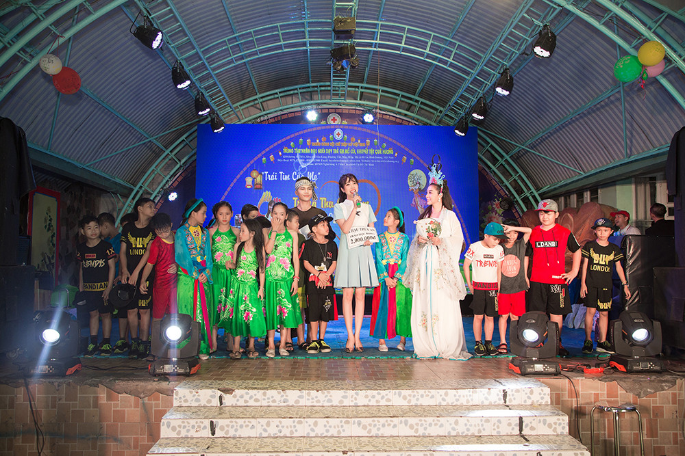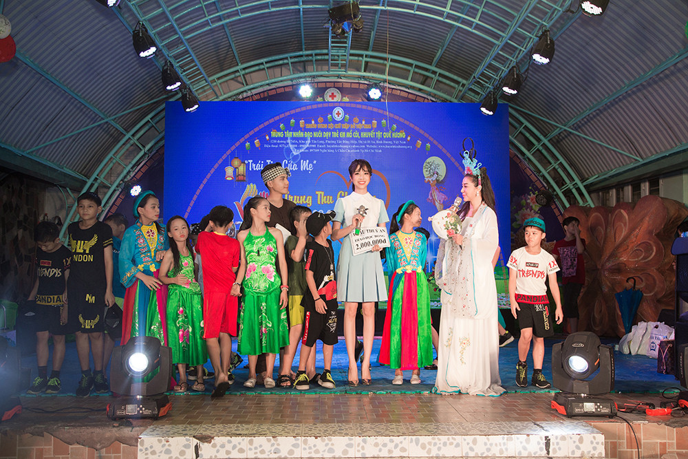 Thay mặt các mạnh thường quân, nàng hậu đã trao tặng 50 phần quà mỗi phần trị giá 2.000.000 đồng tới các em nhỏ của trung tâm cổ vũ tinh thần các em cho một năm học mới chăm ngoan, học giỏi.
