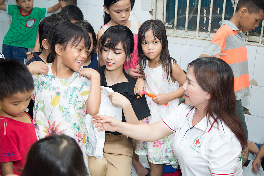 Tới với Trung tâm nhân đạo nuôi dưỡng trẻ em mồ côi, khuyết tật, sự chân thành cùng những hành động ấm áp của Á hậu Thúy An khiến tất cả những người có mặt đều cảm mến và thêm yêu quý nàng hậu trẻ