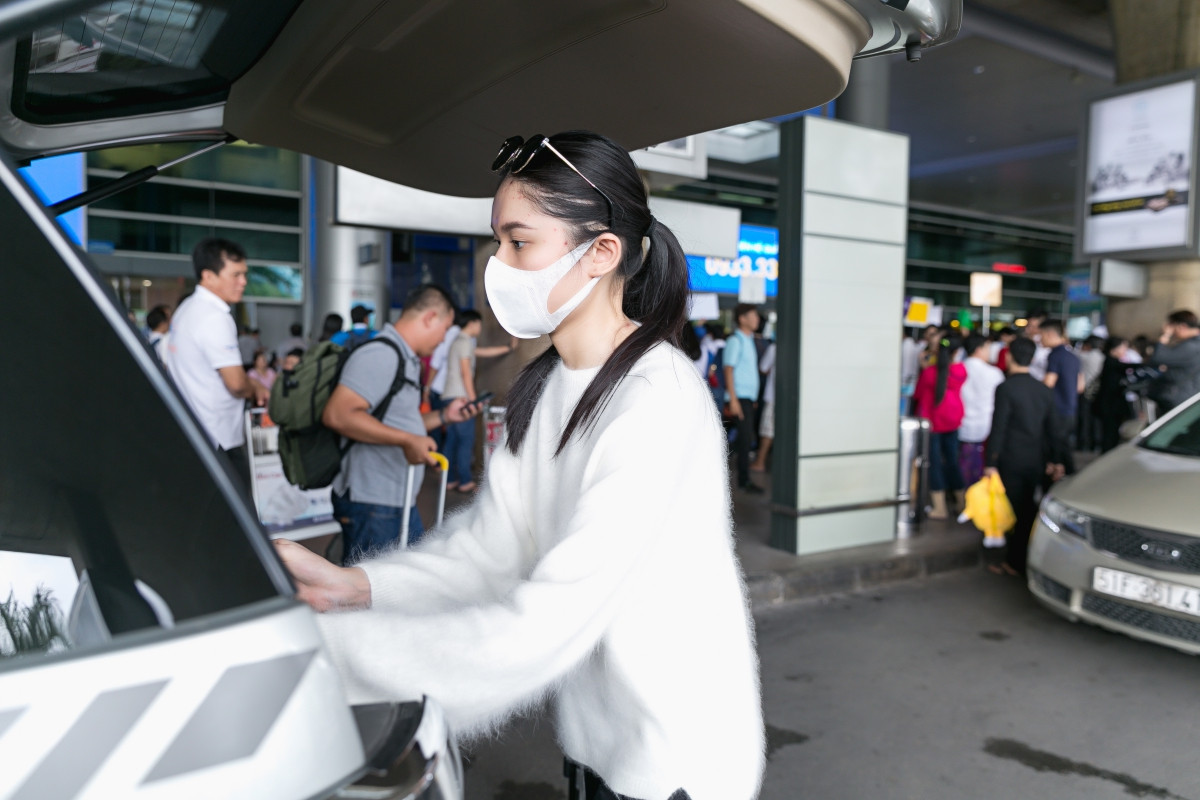 Gương mặt Thùy Dung vẫn còn đầy những nốt mẩn đỏ - sẹo từ căn bệnh thuỷ đậu để lại. Dù vậy, Á hậu luôn mỉm cười hạnh phúc, rạng rỡ khi được bạn bè thân thiết ra đón tại sân bay.