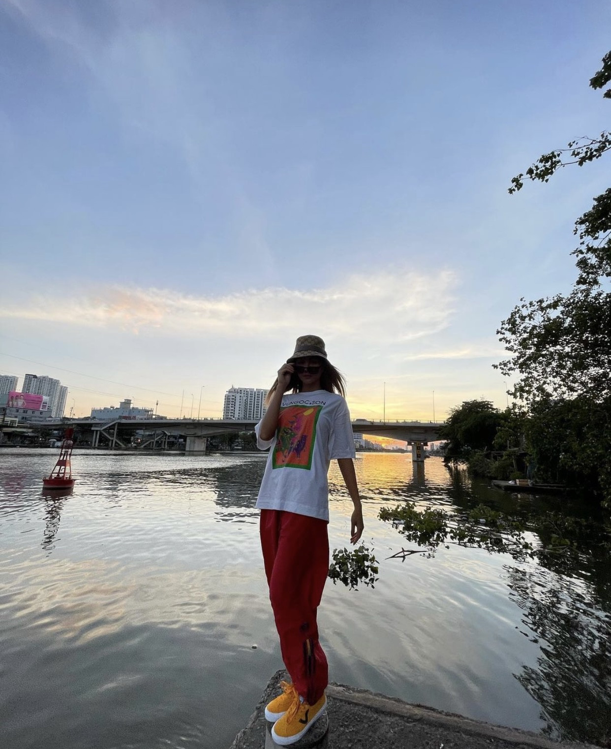 Hoa hậu H'Hen Niê diện trang phục giản dị và cá tính.