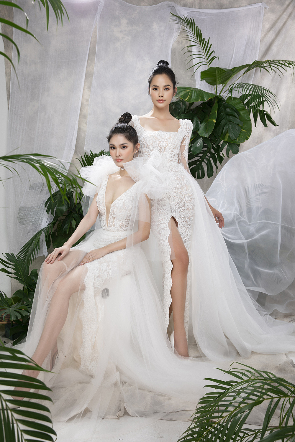 Người đẹp khoác lên mình những bộ váy cưới chất liệu xuyên thấu được đính kết cầu kỳ.