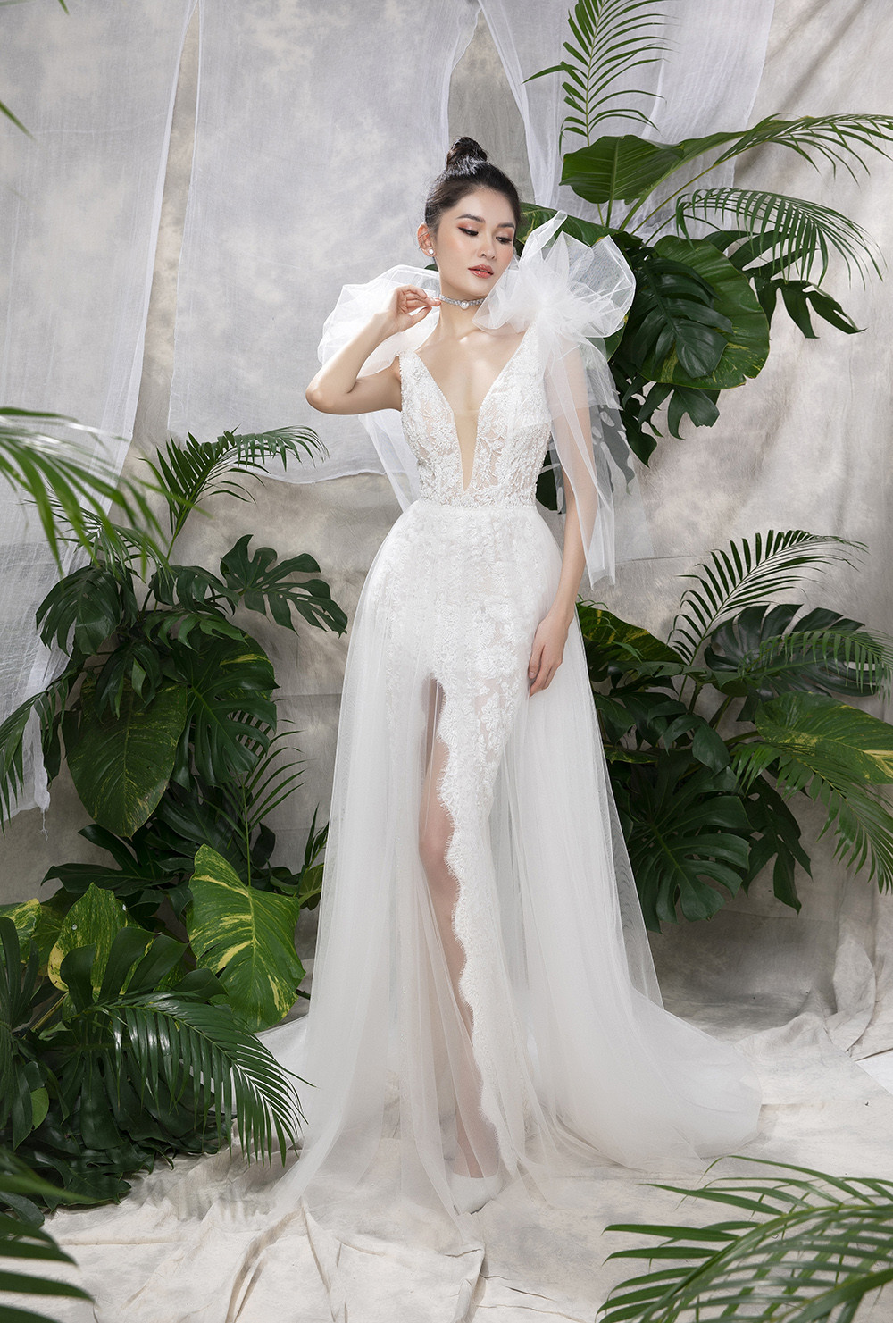 Á hậu Thuỳ Dung diện loạt váy cưới cắt xẻ khoe vòng một nóng bỏng