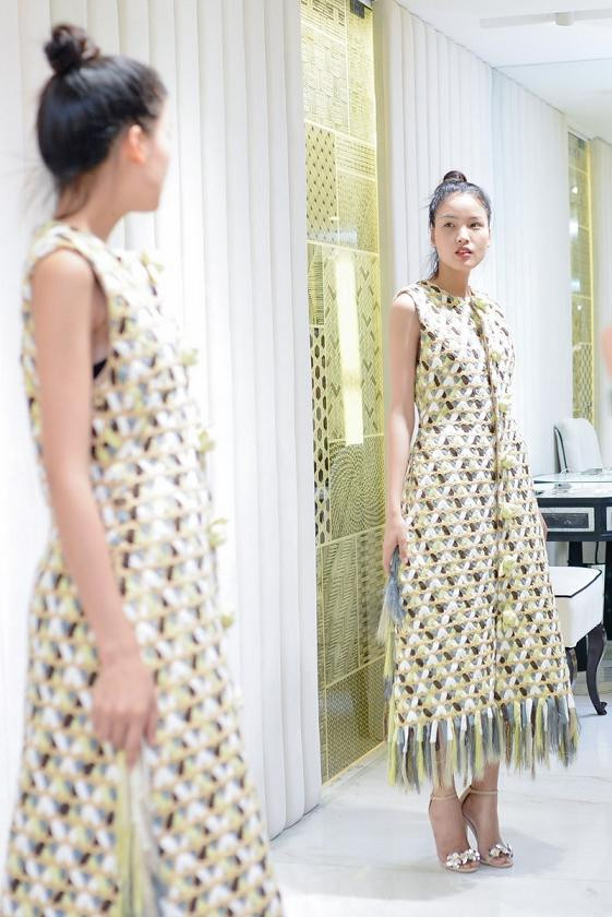 Người mẫu Hoàng Oanh thử một trang phục ấn tượng của Công Trí.
