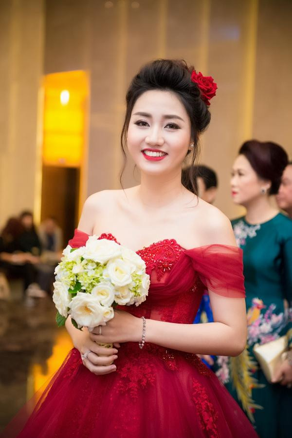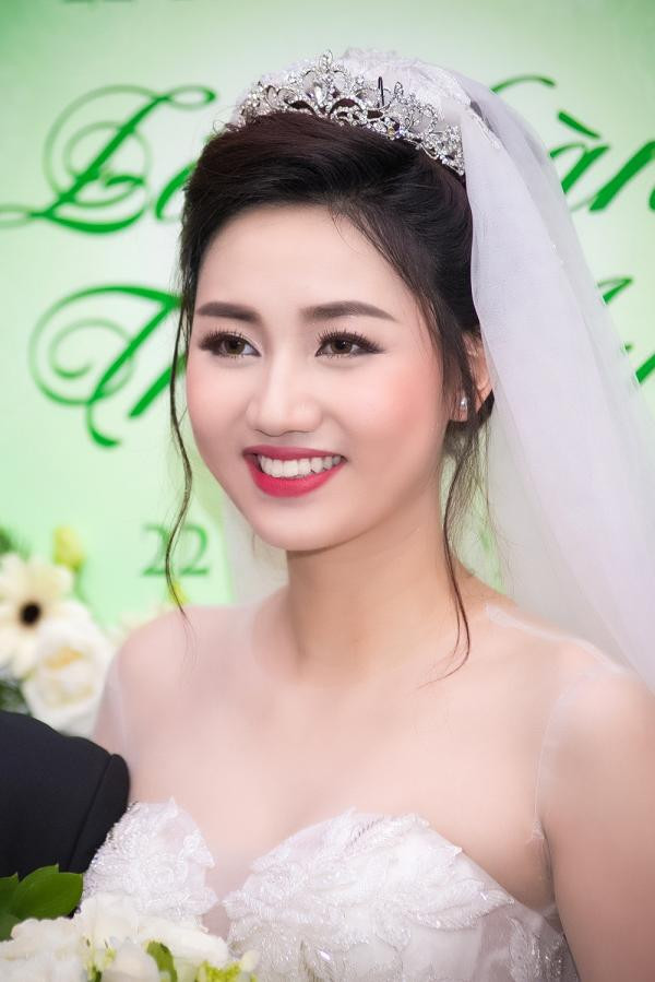 Được biết Á hậu đang mang thai ở những tháng đầu tiên nhưng cô vẫn chưa tăng cân và vô cùng duyên dáng xinh đẹp trong bộ váy cưới.