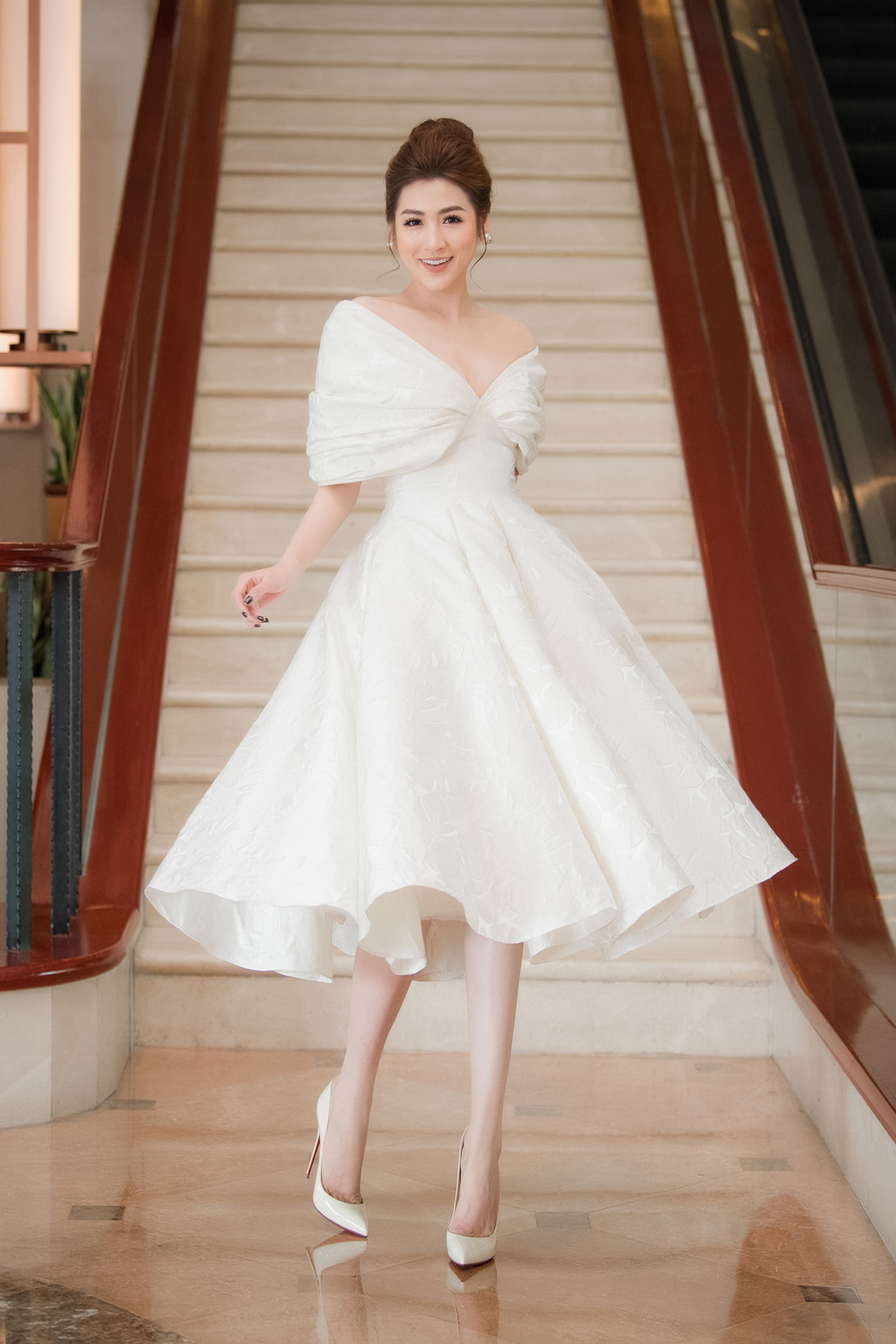 Hôm 11/7, Á hậu Tú Anh xuất hiện tại một sự kiện ở Hà Nội. Người đẹp gây chú ý khi diện bộ váy xoè yêu kiều như công chúa với gam màu trắng tinh khôi.