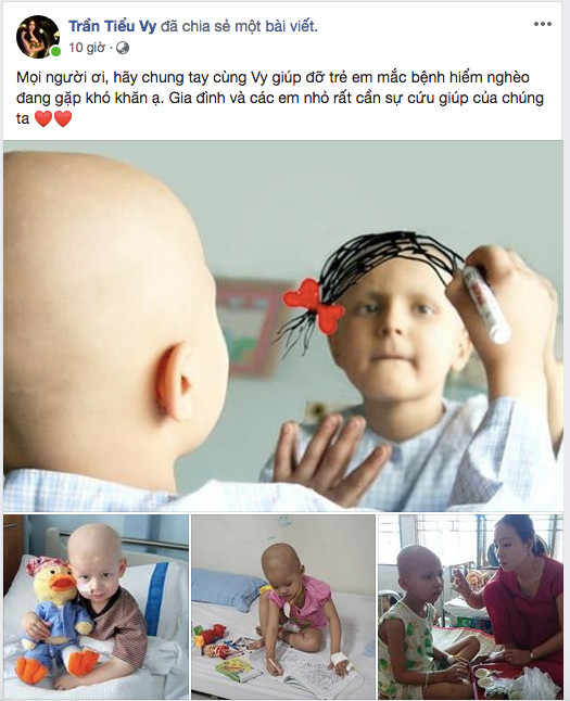 Hoa hậu Tiểu Vy kêu gọi các tấm lòng hảo tâm chung tay giúp đỡ những trẻ em bị ung thư trên trang cá nhân.