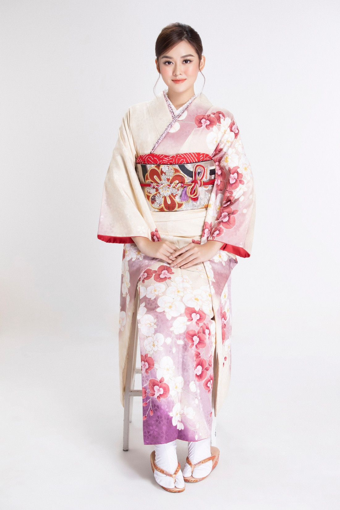 Xuyên suốt từng khung hình, có thể thấy rõ thần thái tươi tắn, tỏa sáng rạng rỡ của nàng Á hậu khi điện kimono. Đường nét uyển chuyển, lối trang điểm nhẹ nhàng, ngọt ngào, thậm chí đến dáng pose Tường San cũng thể hiện vô cùng trang nhã, đúng kiểu con gái Nhật.