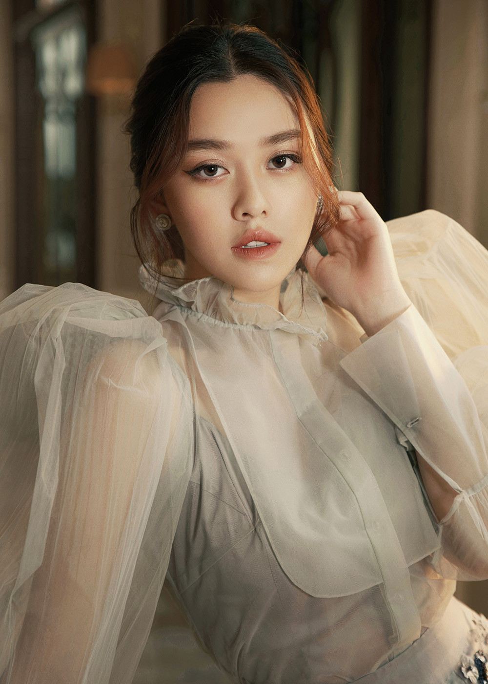 Gương mặt sáng cùng làn da trắng của người đẹp càng thêm cuốn hút hơn khi kết hợp với kiểu tóc và màu son tông hồng đất nhẹ nhàng.