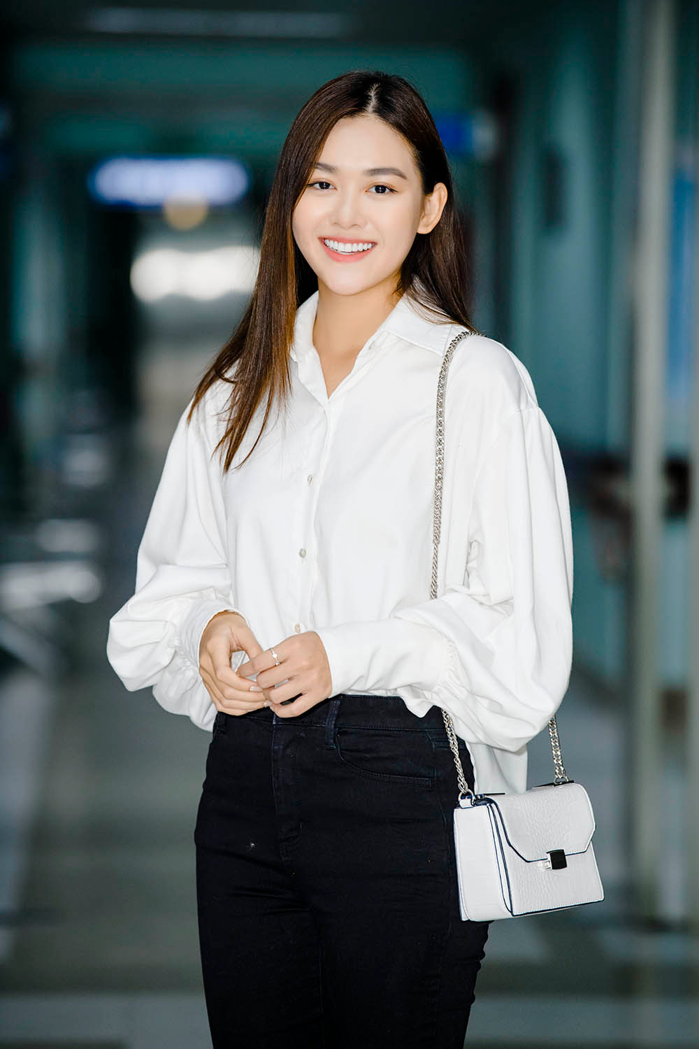 Trước đó, Á hậu Tường San và gia đình đã có chuyến thiện nguyện tại Bệnh viện Nhi Trung ương, Hà Nội. Nàng hậu xuất hiện với trang phục lịch sự cùng áo sơ mi trắng phối với quần jean nhẹ nhàng mà thanh lịch.