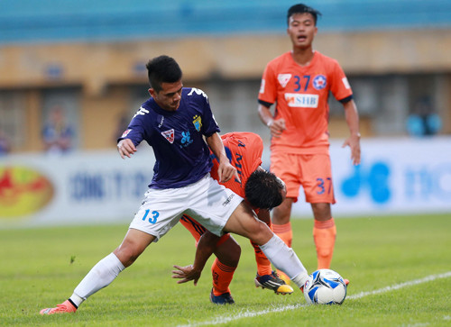 Chiều nay 1/5, CĐV thủ đô lần đầu tiên được chứng kiến Hà Nội T&T giành chiến thắng trên sân nhà, trong trận “nội chiến” với Đà Nẵng (đội bóng cũng được nhận tài trợ từ công ty của bầu Hiển).
