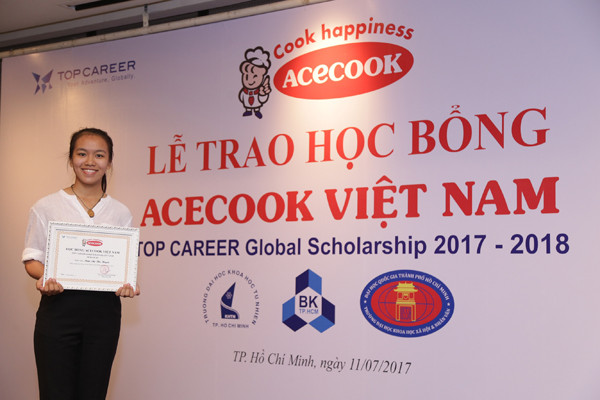 Chia sẻ cảm xúc khi được nhận học bổng năm nay, bạn Trần Thị Thu Huyền, sinh viên trường Đại học KHXH & NV TP.HCM xúc động: “Cảm ơn công ty Acecook Việt Nam đã mang đến cho chúng em học bổng rất thiết thực này. Học bổng Acecook Việt Nam 2017 không chỉ hỗ trợ chúng em về mặt vật chất, mà còn là nguồn động viên lớn giúp chúng em đứng vững và vươn lên trong mọi hoàn cảnh khó khăn để tiếp tục học tập tốt hơn, trở thành người công dân có ích cho xã hội và đất nước!”