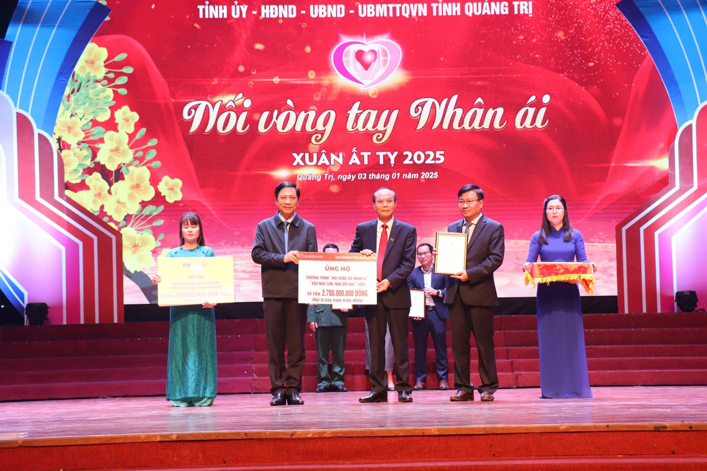 Tham dự chương trình, có sự hiện diện của đồng chí Nguyễn Long Hải - Ủy viên dự khuyết BCH TW Đảng, Bí thư Tỉnh uỷ tỉnh Quảng Trị; đồng chí Nguyễn Đăng Quang - Phó bí thư Tỉnh uỷ, Chủ tịch HĐND tỉnh; đồng chí Đào Mạnh Hùng - Chủ tịch Uỷ ban Mặt trận tổ quốc tỉnh Quảng Trị cùng các đơn vị, địa phương, cơ quan, doanh nghiệp, nhà hảo tâm tại tỉnh Quảng Trị. Về phía Agribank, có Ông Nguyễn Quốc Dũng - Phó Trưởng Văn phòng đại diện Agribank khu vực miền Trung cùng ông Võ Văn Tình - Phó Giám đốc Agribank Chi nhánh tỉnh Quảng Trị thừa Ủy quyền của Tổng Giám đốc Agribank tham dự và trao tặng 2,7 tỷ đồng để chung tay xóa nhà tạm, nhà dột nát trên địa bàn tỉnh Quảng Trị.
