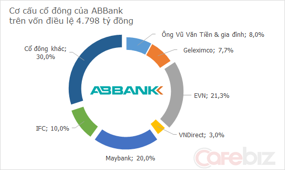 Được biết đến là nhóm cổ đông có ảnh hưởng nhất tới ABB nhưng tỷ lệ sở hữu chính thức của ông Vũ Văn Tiền – chủ tịch HĐQT và Geleximco lại không nhiều.