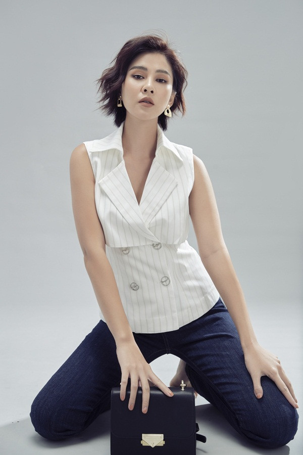 Thu Hoài cũng rất khéo léo khi kết hợp áo blazer cùng quần jeans. Chúng ta đều biết rằng, áo blazer là món đồ “thần thánh” giúp bạn biến quần jeans, áo thun năng động trở nên thanh lịch hơn.