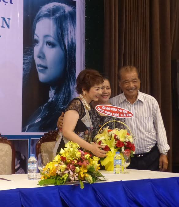 Gia đình NSND Trần Tiến tặng hoa chúc mừng Ái Vân.