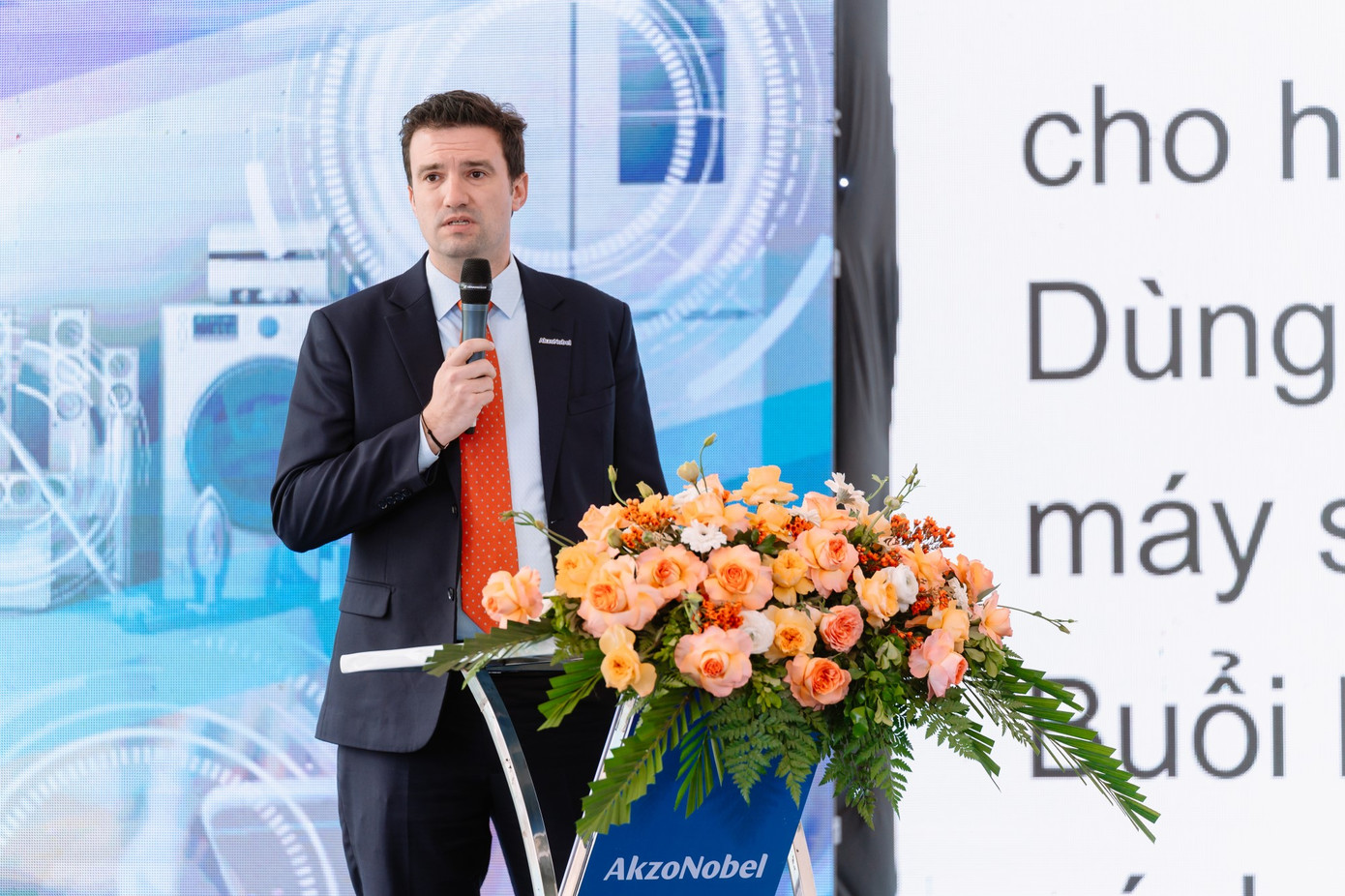 Dây chuyền mới này cũng thể hiện cam kết phát triển bền vững của AkzoNobel tại thị trường Việt Nam. Ông Maximilien Schréder - Giám đốc Thương mại, đơn vị Sơn điện tử tiêu dùng Toàn cầu, đơn vị sơn Ô tô & Sơn tái hoàn thiện khu vực Bắc Á, AkzoNobel cho biết: “Việc mở rộng năng lực sản xuất tại Bắc Ninh cho phép AkzoNobel cung cấp công nghệ sơn phủ gốc nước tối ưu nhất, nhằm đem đến các giải pháp sơn phủ hiệu quả cho các đối tác thuộc lĩnh vực Công nghệ thông tin, Thiết bị không dây và Thiết bị gia dụng. Chúng tôi cũng luôn không ngừng đổi mới cách thức sản xuất và tìm ra công nghệ hiện đại để giảm hàm lượng VOC trong tất cả các sản phẩm. Khoản đầu tư này là minh chứng cho niềm tin của chúng tôi vào tiềm năng của Việt Nam và là tín hiệu mạnh mẽ về sự hỗ trợ không ngừng của chúng tôi đối với sự phát triển của khu vực.”