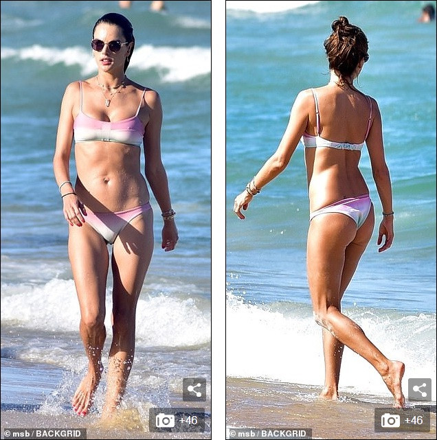 Alessandra Ambrosio trở thành tâm điểm chú ý trên bãi biển với gương mặt xinh đẹp, trẻ trung và thân hình săn chắc, nuột nà ở tuổi U40.