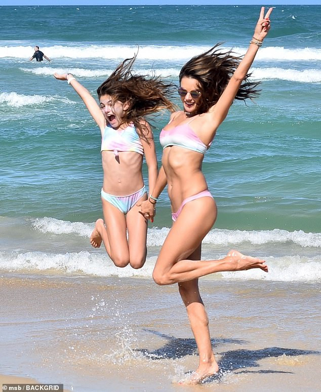 Alessandra Ambrosio mặc bikini đôi với con gái, hôn đắm đuối bạn trai