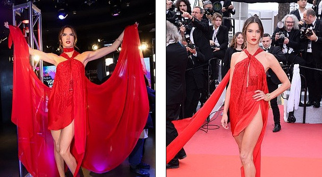Alessandra Ambrosio đã diện đầm đỏ cắt xẻ táo bạo đến dự buổi chiếu ra mắt phim "Những người khốn khổ" tại LHP Cannes tổ chức tại thành phố biển nước Pháp hồi tháng 5 vừa qua.