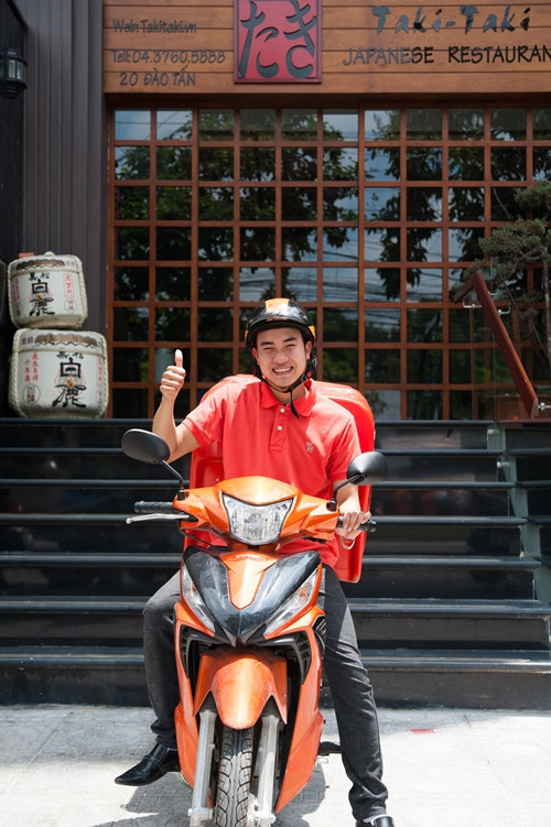 Nhân viên chuẩn bị đi giao sushi cho khách hàng