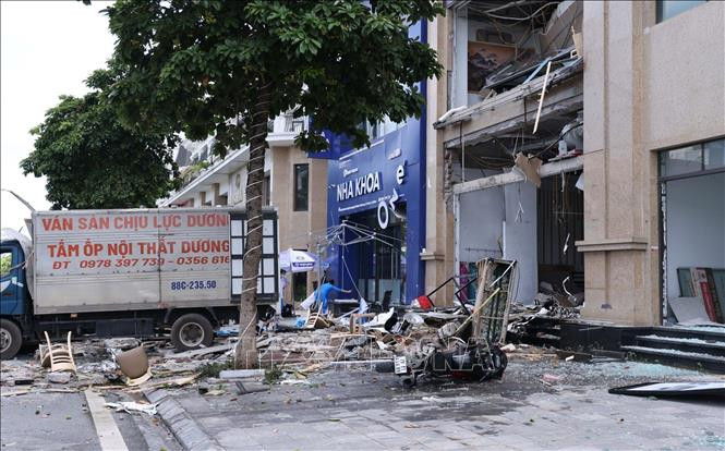 | Vụ nổ đã làm rung chuyển các căn hộ trong chung cư và những cửa hàng của tuyến phố xung quanh. Ảnh: Nguyễn Hoàn (VietNamNet) |