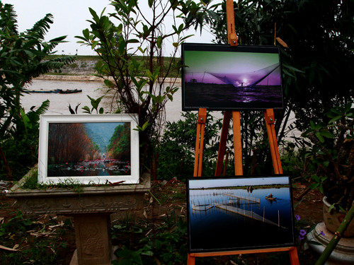 | Nhiều tác phẩm của hội viên CLB Tia Chớp được trưng bày giữa thiên nhiên, sông nước. |