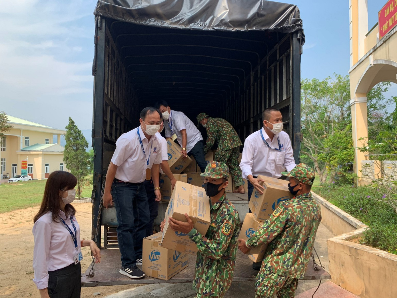 Xuôi về phương Nam, xe hàng đưa sản phẩm tài trợ của Công ty đến Đà Nẵng. Đoàn đã gặp mặt và trao tặng sản phẩm cho Ban chỉ huy và các chiến sĩ tại Bệnh viện dã chiến Đà nẵng