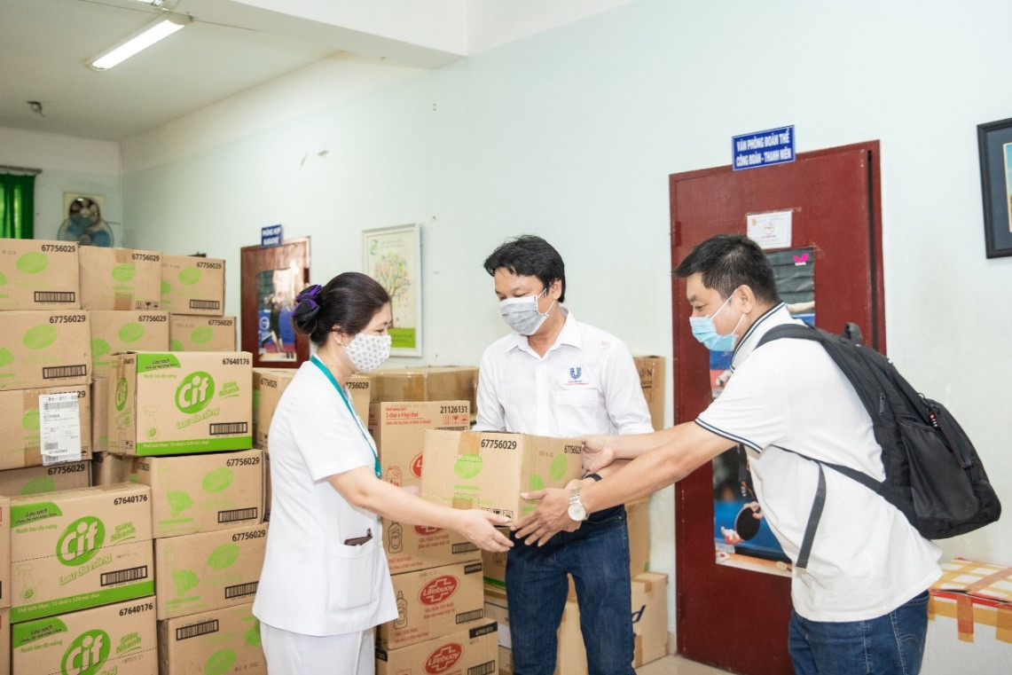 Hàng trăm thùng sản phẩm tài trợ đến với Bệnh viện Nhiệt đới tp Hồ Chí Minh – nơi tiếp nhận sàng lọc và điều trị bệnh nhận COVID-19 tại tp HCM, đặc biệt là các ca bệnh nặng. Các y bác sĩ vui mừng đón nhận sự chung tay đồng hành của doanh nghiệp với những chiến sĩ áo trắng