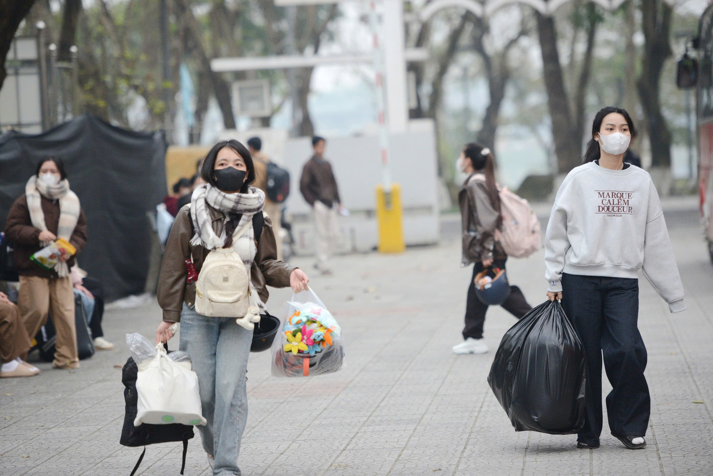 | Vẫy chào sinh viên về quê đón Tết. |