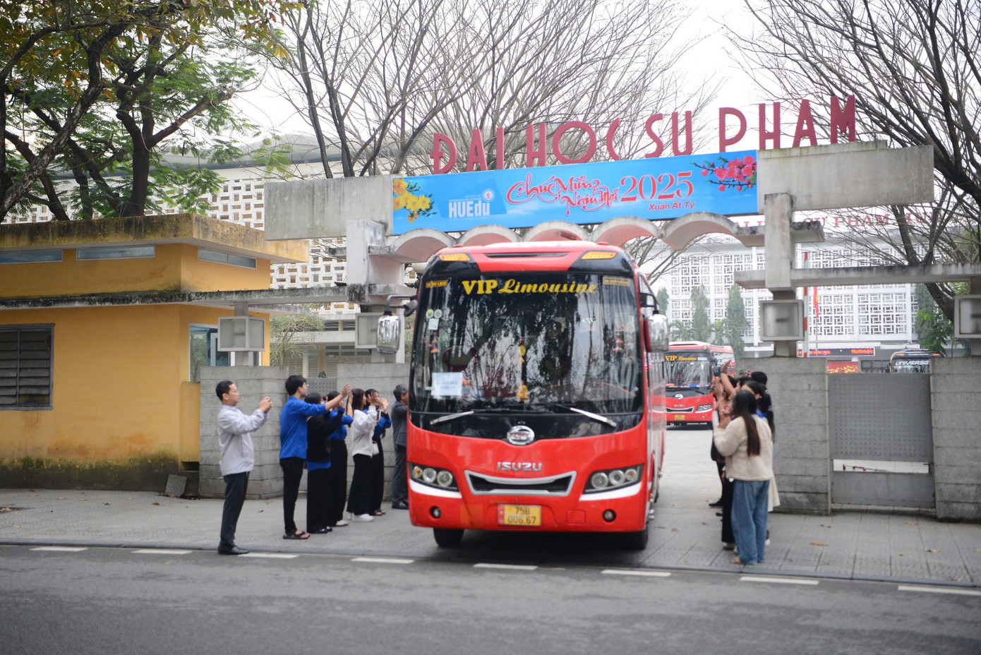 Ra tận xe tiễn sinh viên về quê, GS.TS. Dương Tuấn Quang - Bí thư Đảng ủy, Chủ tịch Hội đồng Trường ĐH Sư phạm Huế gửi lời chúc năm mới đến các em và gia đình; mong muốn tất cả đều trở về quê an toàn, nhanh chóng và có những khoảng thời gian ý nghĩa đón chào năm mới Ất Tỵ 2025 ấm áp bên người thân, bạn bè. GS.TS. Dương Tuấn Quang cũng bày tỏ mong muốn khi kết thúc kỳ nghỉ, các em sinh viên sẽ trở lại trường với những năng lượng tích cực, sẵn sàng cho những thử thách mới, tiếp tục hành trình học tập và nghiên cứu.