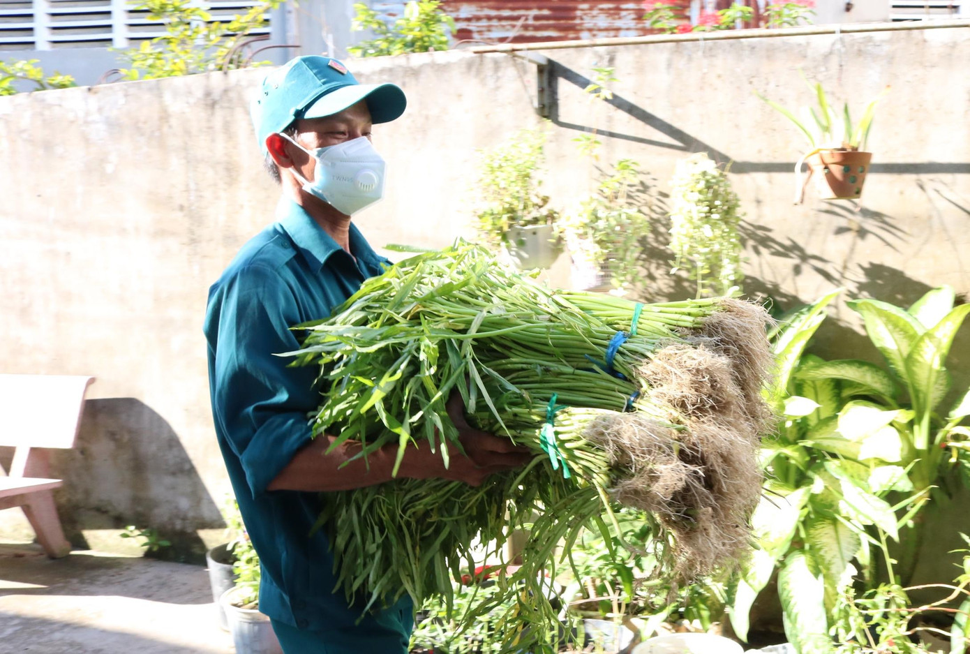 | Rau được tập kết trước đường ra vào để người dân đến lấy - Ảnh: Kim Hà. |