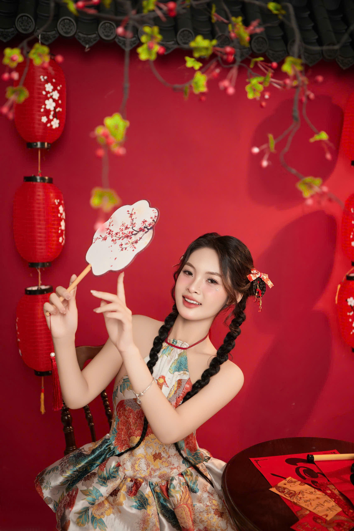 | Đánh dấu năm 2025 Ất Tỵ nhiều khởi sắc, Phương Anh thực hiện bộ ảnh thanh xuân khi lấy sắc đỏ làm chủ đạo cùng sự kết hợp hài hòa giữa đèn lồng, quạt giấy và thư pháp. |
