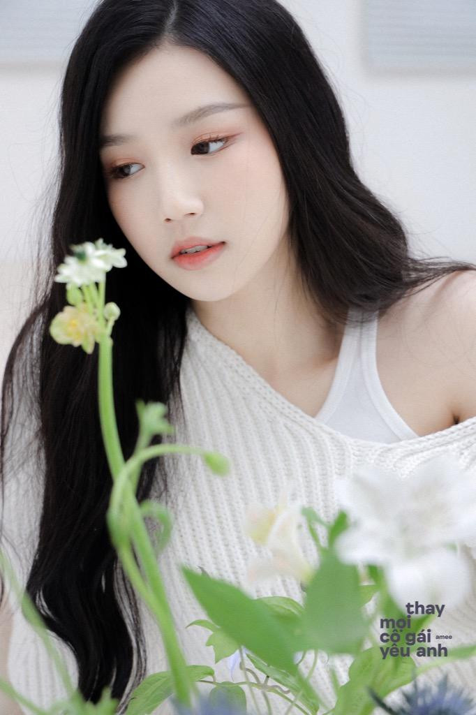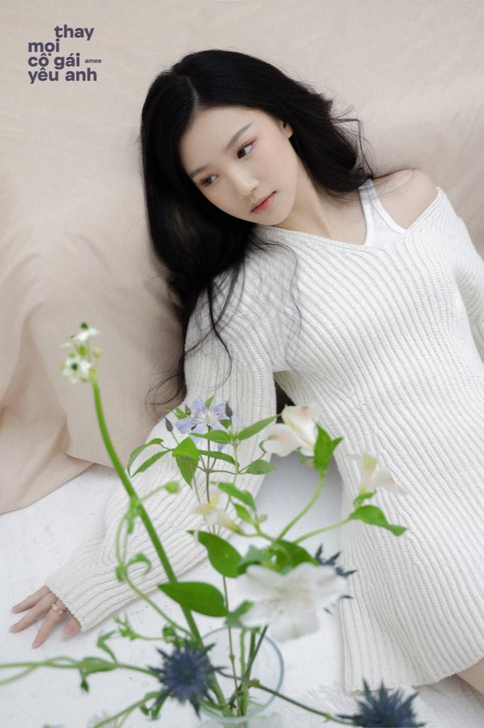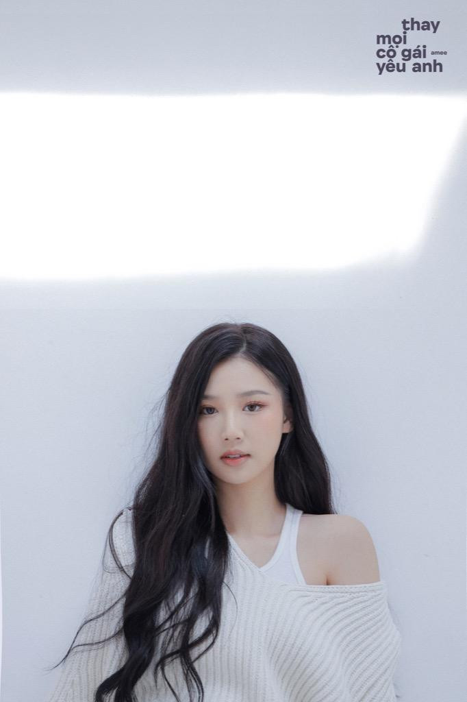 Ở loạt ảnh trong Teaser MV Thay Mọi Cô Gái Yêu Anh, AMEE cũng khoe vẻ xinh đẹp và nữ tính. Khác với phong cách trẻ trung, đáng yêu có phần “high teen" thường thấy, lần này, AMEE xuất hiện với hình ảnh trong sáng, phảng phất nét trưởng thành, sâu sắc.