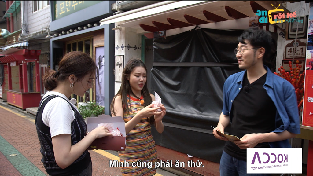 Theo chân bếp trưởng Park Jun Woo, Nancy và JooE đưa “hai thiên thần ẩm thực" Trịnh Thăng Bình, MC Đại Nghĩa và hai khách mời: Han Sara - Tùng Maru đi trải nghiệm món ăn đường phố của người Trung Hoa tại Hàn Quốc như: Bánh đậu đỏ và dâu xiên ngào đường chảy.