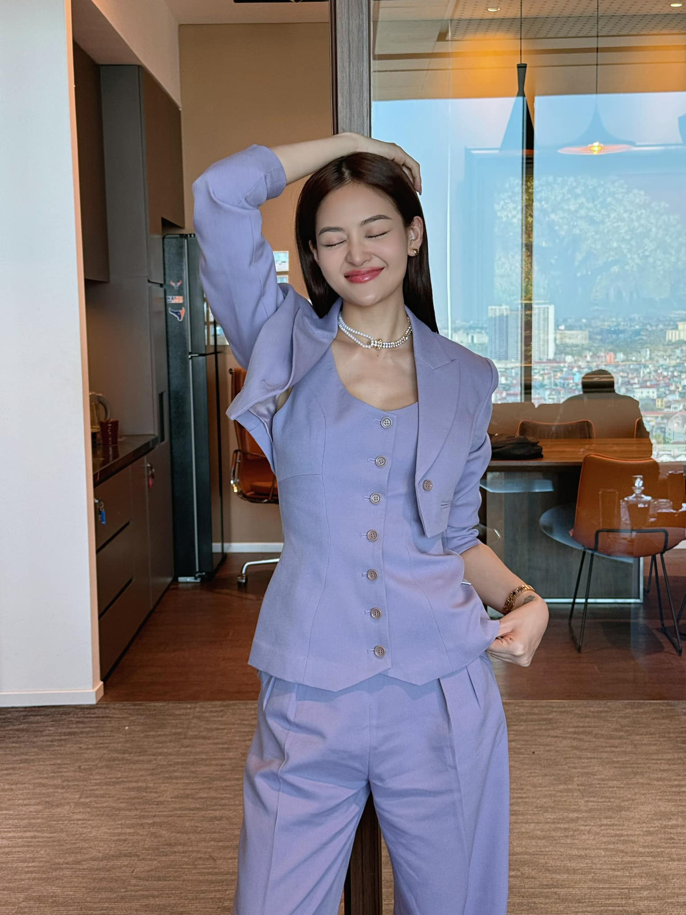 Mỗi lần xuất hiện, Như Ý đều hiện rõ tính cách là một cô gái thời thượng, cá tính nên style cũng không thể đơn giản. Dù là đồ công sở thì Như Ý cũng phải chọn tông hồng hay tím nổi bật với những chi tiết độc đáo, phá cách.