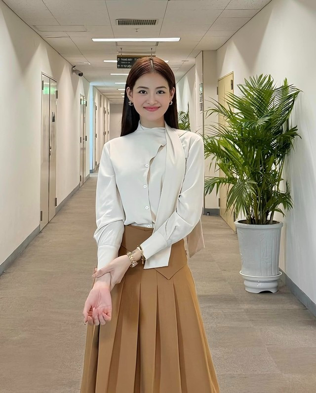 Style đồ đi làm của Như Ý cực ấn tượng với những bộ váy có chi tiết so le, những đường xếp ly nổi bật khiến tổng thể trở nên khác biệt hẳn so với trang phục công sở thông thường.