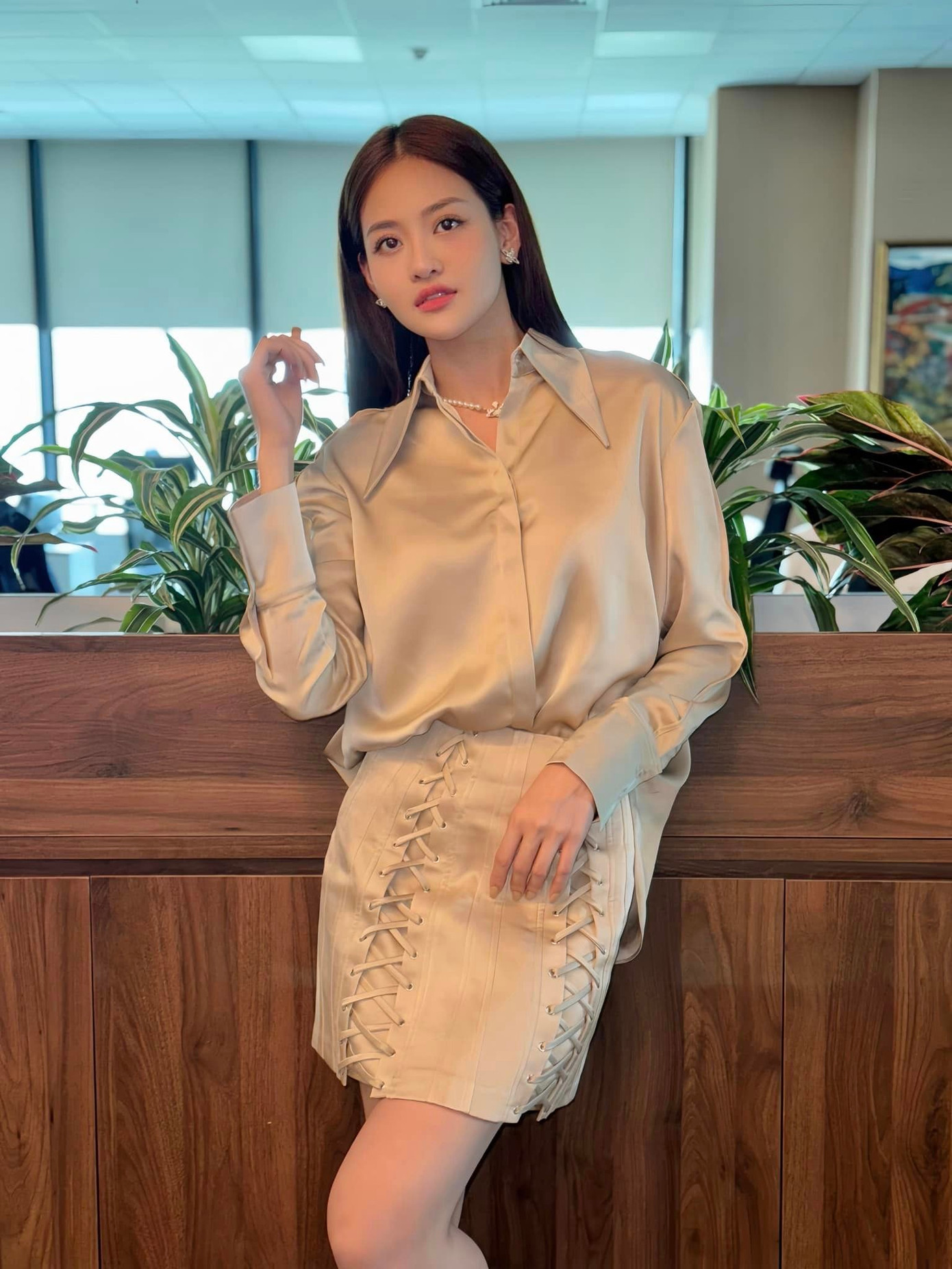 Tuy luôn xuất hiện sành diệu trên phim, set đồ nào cũng được khen đẹp nhưng style của Thùy Anh lại không tạo sức hút bằng Quỳnh Kool, cho dù hai nữ diễn viên đều diện đồ công sở.