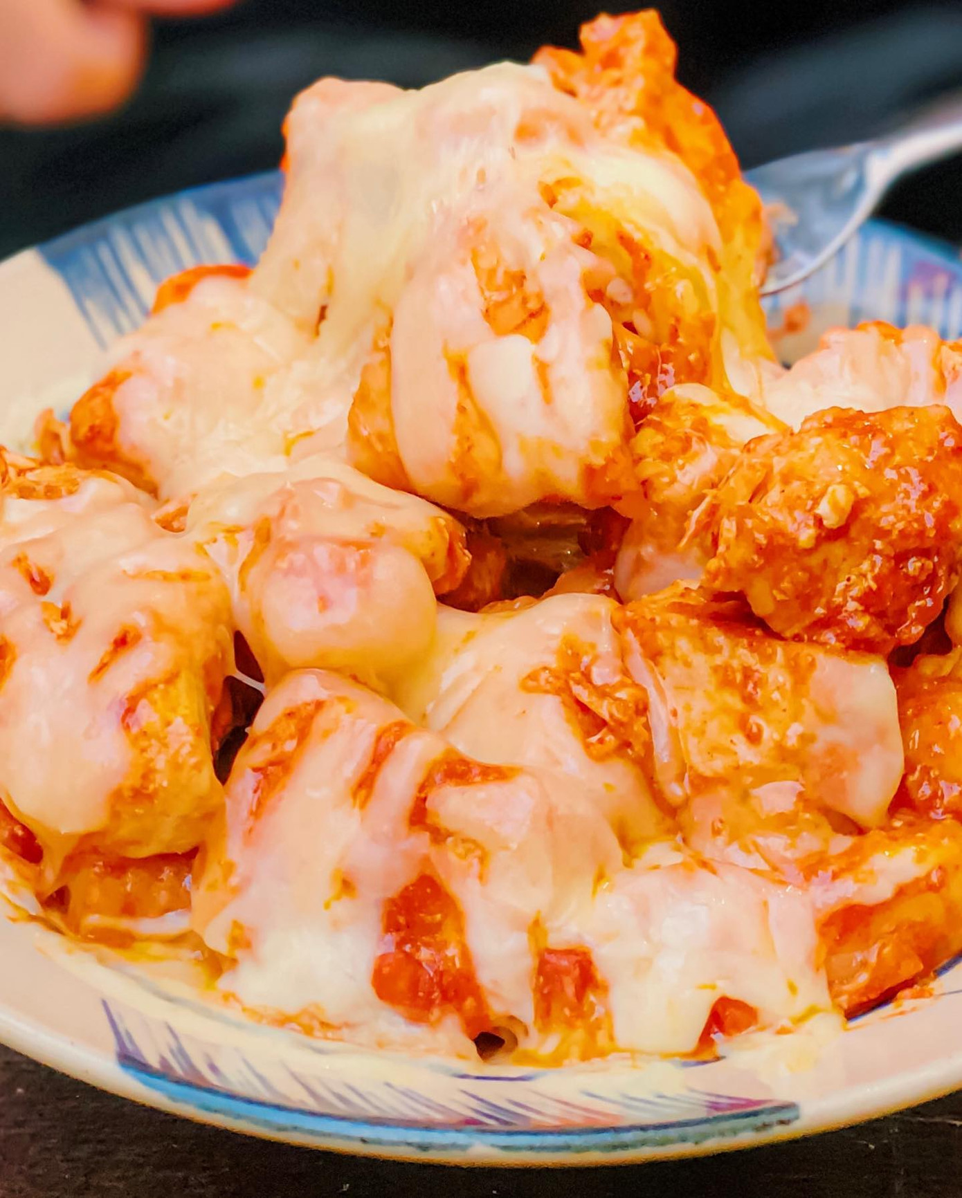 Thực đơn đa dạng với Gà Cay Phô Mai (60K giảm còn 49K), một dĩa khá nhiều gà nạc và rất rất nhiều phô mai thơm béo. Ghẹ Farci Phô Mai Đút Lò (65K giảm còn 49K) khá ổn, một đĩa được 5 mai ghẹ với nhân thịt ghẹ đậm đà, lớp trên phô mai kéo sợi kết hợp rất khéo với bột phô mai.