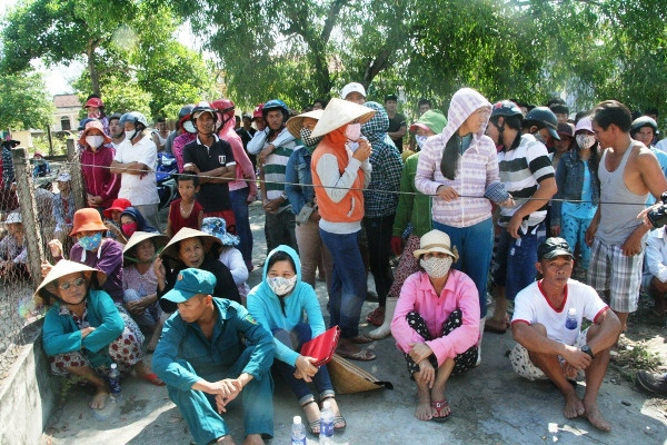 Hàng trăm người dân hiếu kỳ thuộc các địa phương ven biển Phú Vang kéo về hiện trường để xem công an khám nghiệm hiện trường.