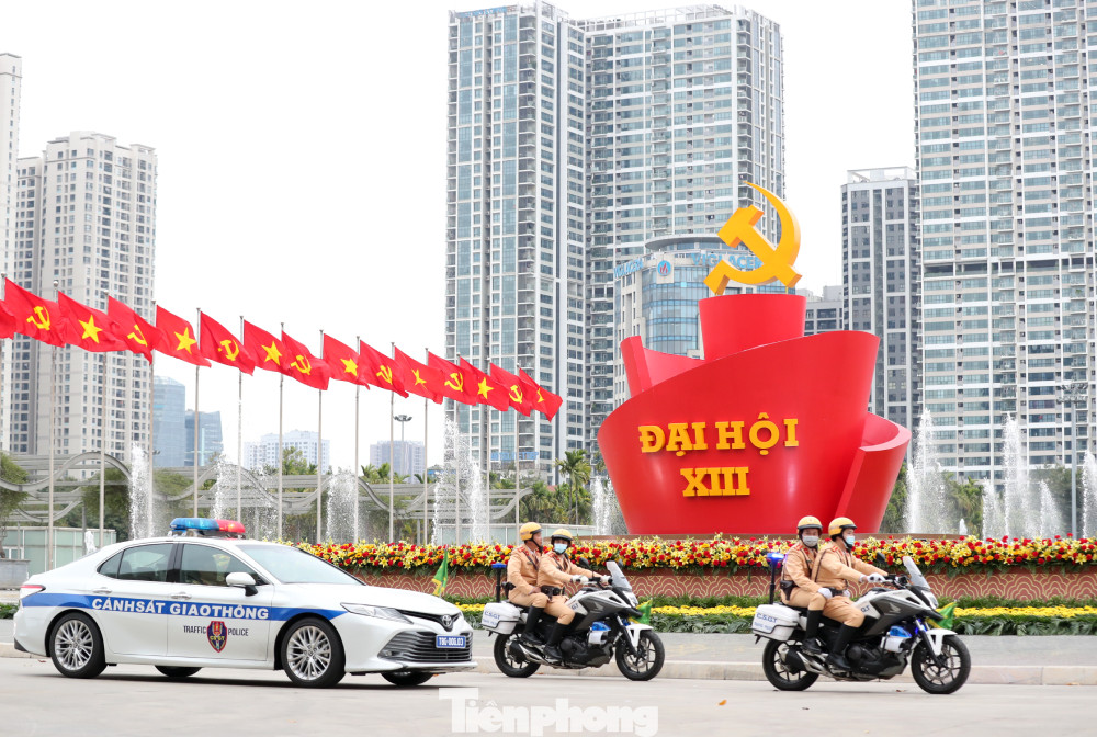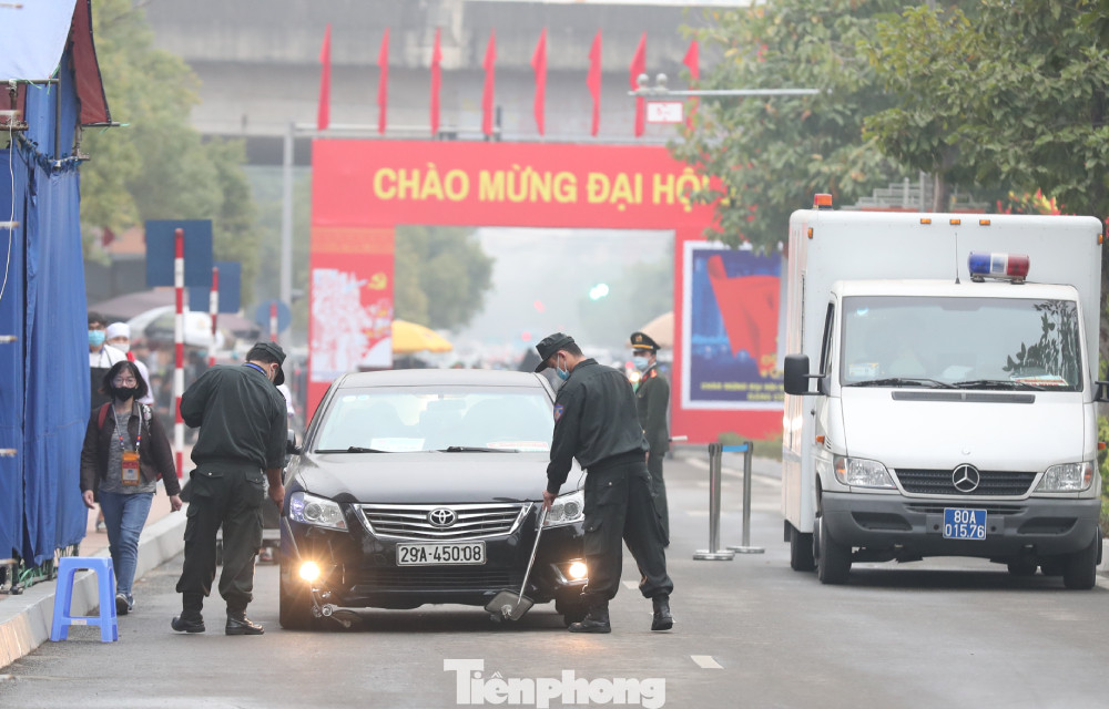 Đội an ninh kiểm tra phương tiện ra vào Trung tâm Hội nghị quốc gia
