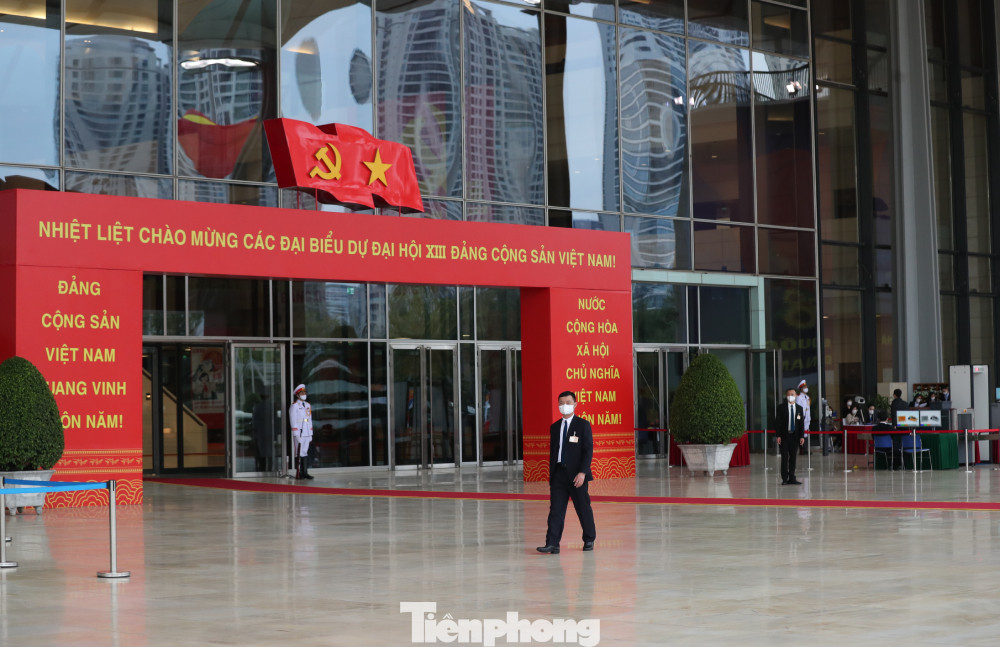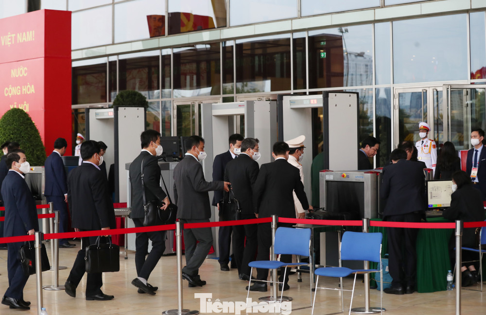 Các đại biểu đều phải đeo khẩu trang phòng dịch và qua cửa kiểm tra an ninh