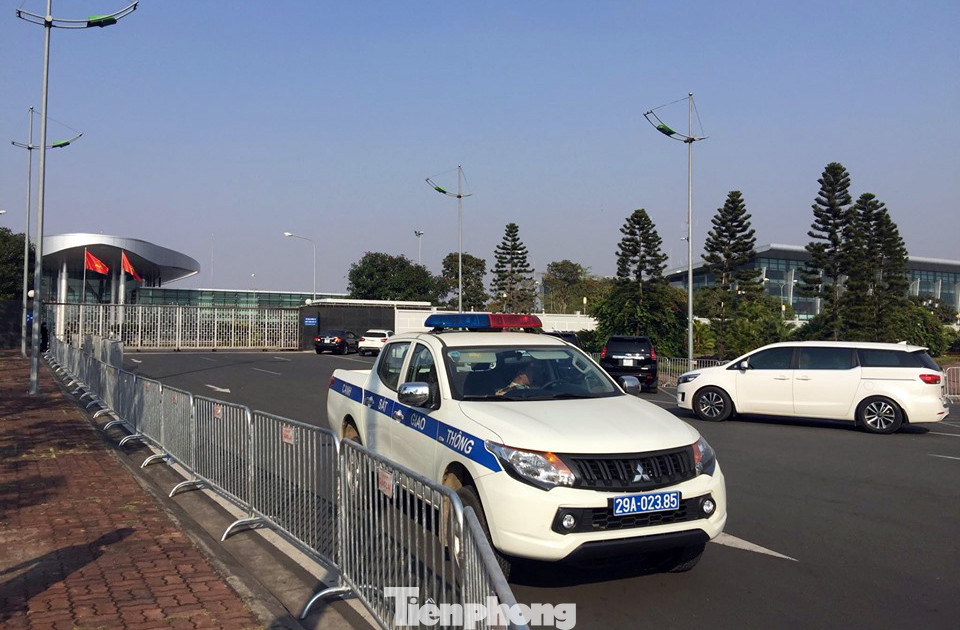 Đầu giờ chiều 11/12, trước cổng ra Sân bay quốc tế Nội Bài, nhiều xe dẫn đoàn CSGT, lực lượng cảnh sát trật tự, lực lượng an ninh sân bay đã sẵn sàng bảo vệ, đảm bảo trật tự đón đoàn dự SEA Games, tuyển U22 Việt Nam trở về Hà Nội.