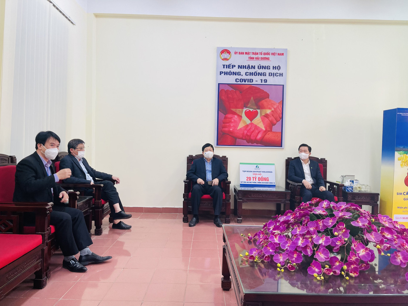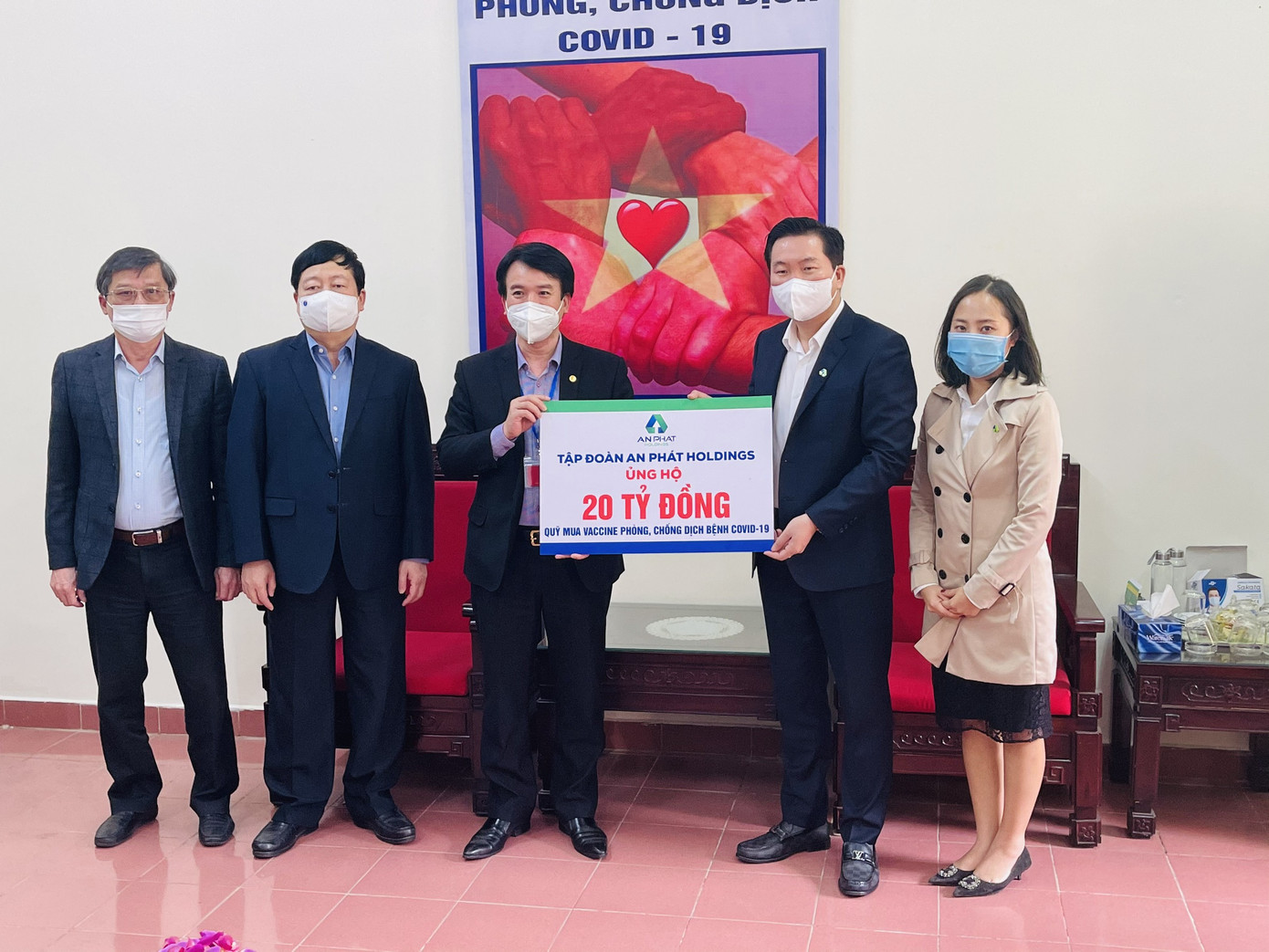 Có mặt tại trụ sở Uỷ ban Mặt trận Tổ quốc Việt Nam tỉnh Hải Dương, đại diện Ban lãnh đạo Tập đoàn An Phát Holdings, ông Phạm Văn Tuấn – Quyền Phó Tổng Giám đốc Tập đoàn đã trực tiếp trao 20 tỷ đồng cho đại diện chính quyền tỉnh Hải Dương nhằm hỗ trợ công tác triển khai mua vaccine Covid-19 cho người dân Hải Dương.