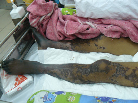 Sáng 5/6, bệnh nhân Lê Đình H. được đưa đến BV đa khoa Hương Trà (Huế) với các triệu chứng sốt cao, người run cầm cập. Sau khi điều trị khoảng 3 giờ đồng hồ thì bệnh nhân có triệu chứng choáng, xuất hiện vết tím tái trên da... nên đã được chuyển lên BV TW Huế để điều trị.