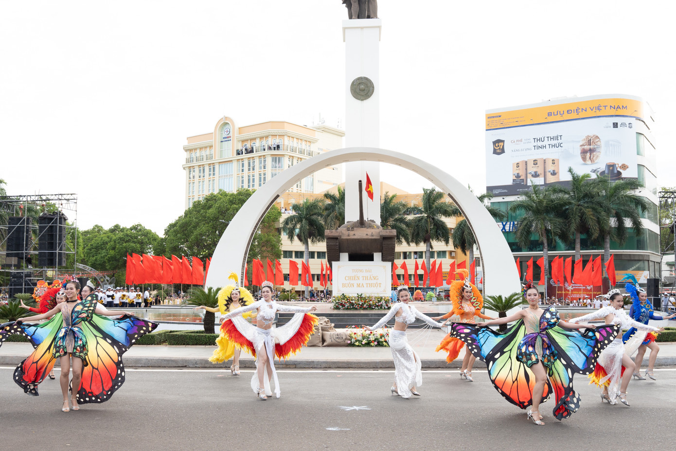Điểm nhấn đặc biệt tạo nên sự đặc biệt và ấn tượng của Lễ hội đường phố năm nay chính là sân khấu khai mạc được đặt tại Tượng đài Chiến thắng Buôn Ma Thuột - một trong những công trình kiến trúc nghệ thuật tiêu biểu của thành phố, mang dấu ấn lịch sử quan trọng. Nơi đây không chỉ là biểu tượng của tinh thần quật cường mà còn là điểm xuất phát đầy ý nghĩa cho những màn diễu hành sôi động. Trong không gian trang trọng ấy, những giá trị lịch sử được tôn vinh, hòa cùng dòng chảy hiện đại, thể hiện khát vọng của Buôn Ma Thuột vươn tầm thế giới, trở thành “Điểm đến của cà phê thế giới”.