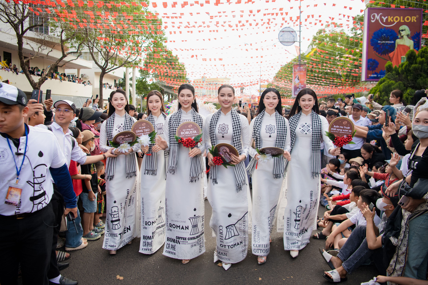 Một trong những điểm nhấn đáng nhớ nhất là màn diễu hành của các hoa hậu và người đẹp trong trang phục lấy cảm hứng từ văn minh cà phê thế giới. Các hoa hậu Ngọc Châu, Thu Uyên, Đoàn Thu Thuỷ, Người đẹp Ngọc Mai, Hoa khôi Vũ Như Quỳnh, Hoa khôi Tâm Anh Thy xuất hiện đầy rạng rỡ, tiếp tục sứ mệnh quảng bá cà phê Buôn Ma Thuột ra toàn cầu. Bên cạnh đó, các người mẫu trẻ trong những bộ trang phục người đẹp cà phê, thể hiện một vẻ đẹp quyến rũ, tỉnh thức, tràn đầy năng lượng.