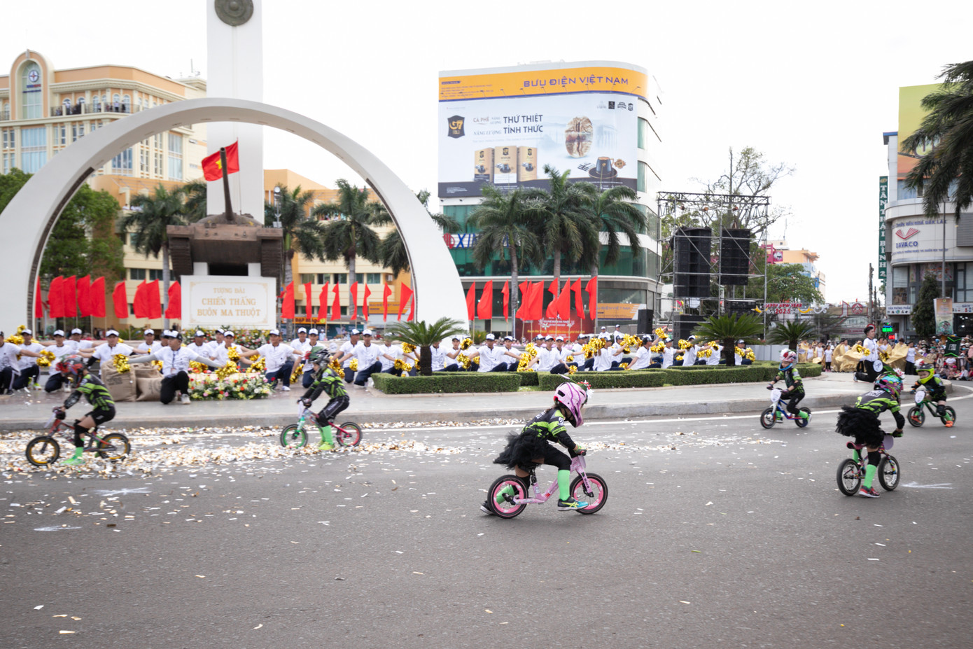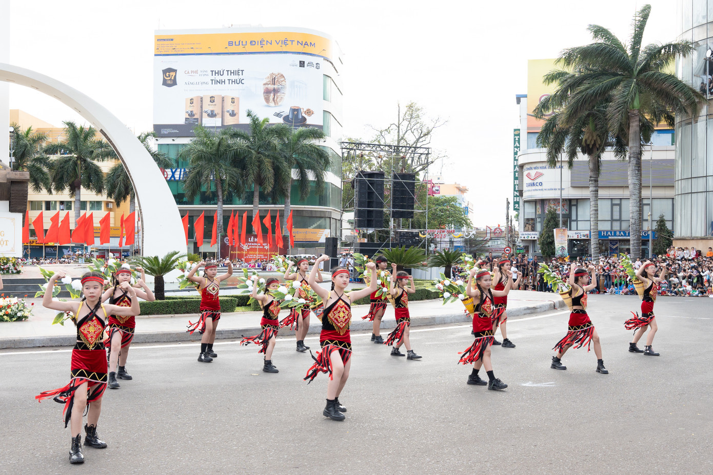 Trong đó, đoàn diễu hành của các em thiếu nhi "Sắc màu tuổi thơ" kết hợp cùng đội hình cà kheo vui nhộn tạo nên bức tranh rực rỡ, sống động, thể hiện sức sống mạnh mẽ của Tây Nguyên ngày nay, với khát vọng vươn cao, sự tăng trưởng và đổi đời nhờ hạt cà phê. Đồng thời, các màn trình diễn nghệ thuật đầy sáng tạo, bao gồm đoàn diễu hành patin lướt ván trượt trên cạn, xe chòi strider bike của thiếu nhi, cùng những tiết mục nhào lộn tricking ấn tượng, những màn cheerleading sôi động, hào hứng và các điệu nhảy hiện đại tràn đầy năng lượng tiếp tục đem đến cho khán giả và người dân những khoảnh khắc bùng nổ, lan tỏa tinh thần trẻ trung, đổi mới và sáng tạo không ngừng.